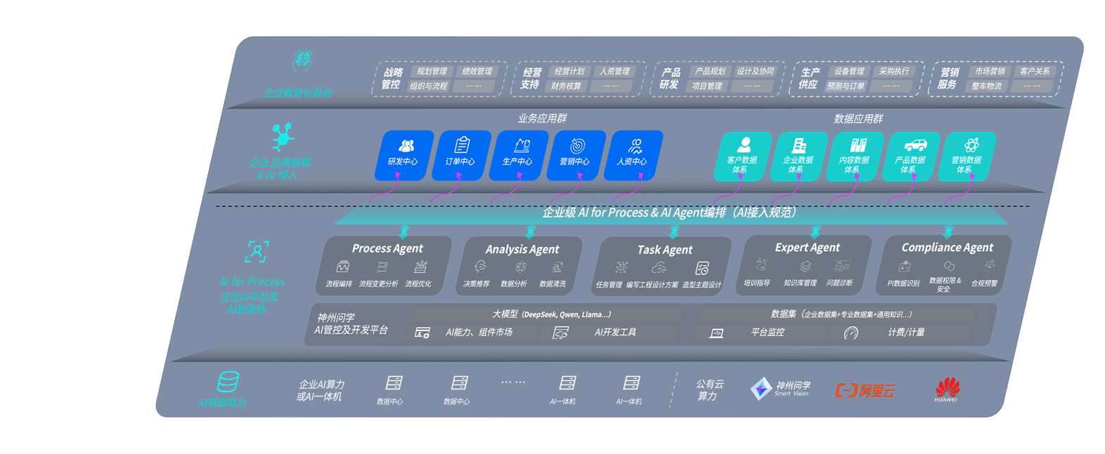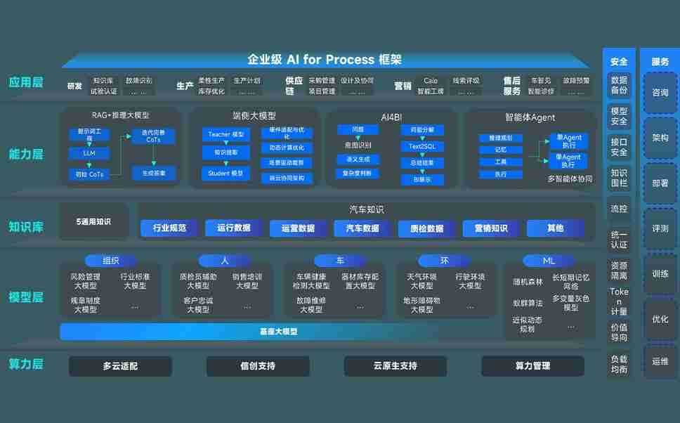 端到端的一站式AI工作空间深度融合了从企业战略规划到日常经营的全流程业务板块,,定向解决车企内部领域多、、、部门多、、、、链条长、、、、场景碎片化等难题,,,,支持车企快速构建以AI为核心的生产力写作体系,,,实现任务执行与AI能力的无缝集成与交互